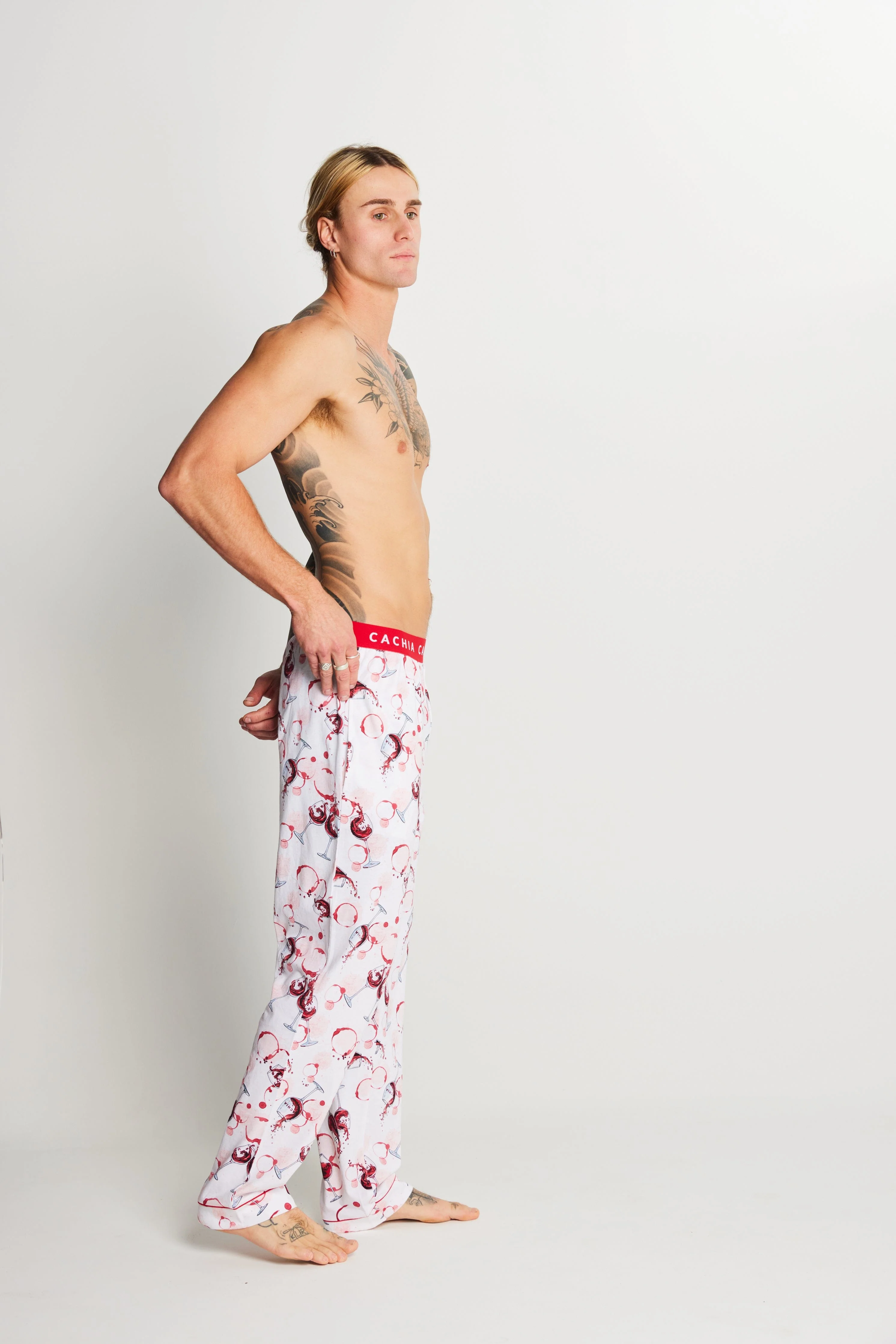 Meet the Vino unisex pant, a playful nod to your favourite pour. Featuring an all-over red wine bottle splatter print on a crisp white base, this wide leg pant is crafted from breathable cotton with our signature elasticated waistband. It's the perfect gift for the wine lover in your life or a cheeky treat for yourself.
